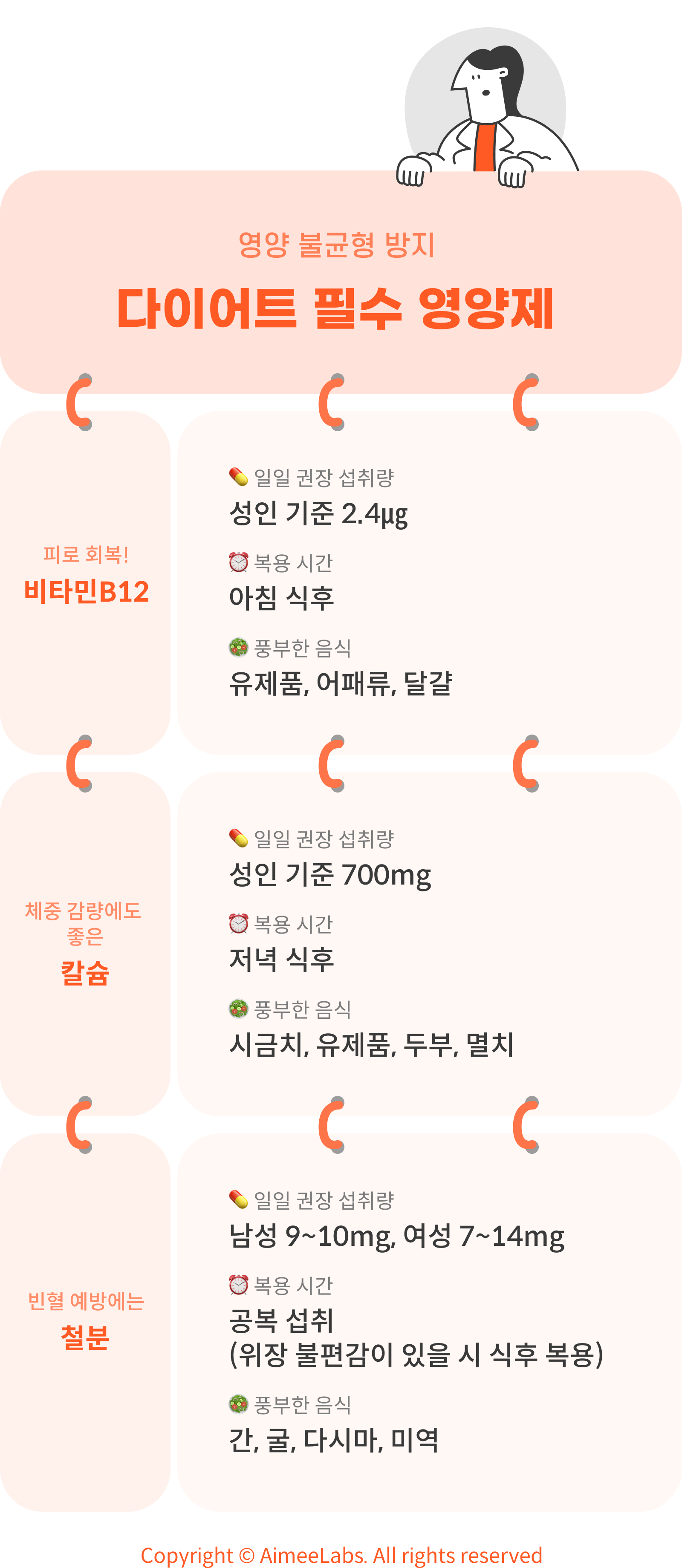 효과적인 체중 감량을 위해서는 식단 조절이 필수!🥗 하지만 무리하게 열량을 제한하게 되면 영양소 불균형이 생길 수 있기 때문에 주의가 필요해요. 영양 부족이 몸 전체의 건강 저하로 이어지지 않게 하려면 영양소가 고루 들어있는 음식을 섭취하고, 적절한 운동을 병행하시는 게 좋아요.(이건 너무 뻔한 사실이죠..?🙄) 오늘은 영양 결핍 없이 건강하고 탄탄한 몸을 만들 수 있을 영양제를 가져와 봤어요!🏋️♀️